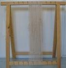 On the graduated part of the loom, attach cotton threads that have to stay in place. For your first work, you will start with a width of 15 cm. You can adjust it as you wish later by attaching more threads.